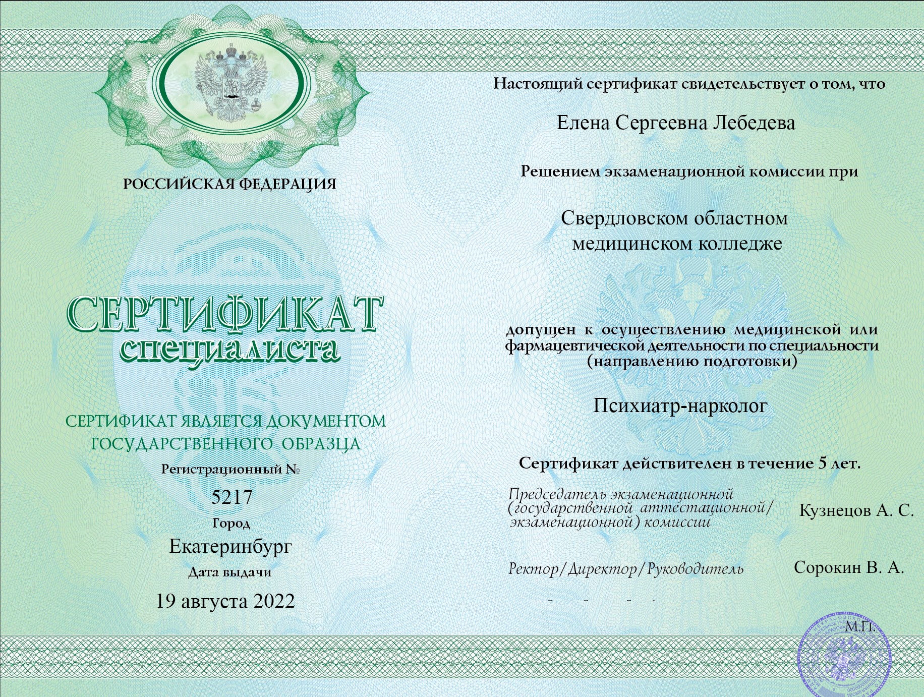 Елена Сергеевна Лебедева врач нарколог клиники доктора Стукаловой в Камбарке
